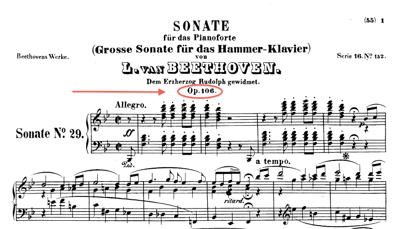 without opus number" atau WoO) untuk komposisi Beethoven yang tidak pernah diterbitkan dengan nomor opus atau